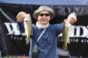 OSPドライブシャッド3in(シナモンブルー)とスタッガーワイド(カラー不明)の2種類を、2.6gのカバーシンカーを使ったショートリーダーダウンショットで使用、動かし方としてはシェイクはせず基本ズル引きでオダにひっかけてのハングオフで攻めたようだ。結果8本ものバスをキャッチし3本2094gで昨年の新利根川戦に続き2度目の優勝を飾った。