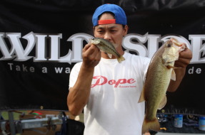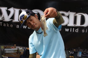 第3位決めたのは近年このフィールドに通っているという近藤友貴氏、朝一に将監川トンネル先のブッシュをバズベイト(OSPゼロツービート:ブラック)のスロー引きで47cm(1450g)のキッカーをキャッチし、その後杭をヘビダンで攻め2本目を追加して2本で2006gでの入賞となった。